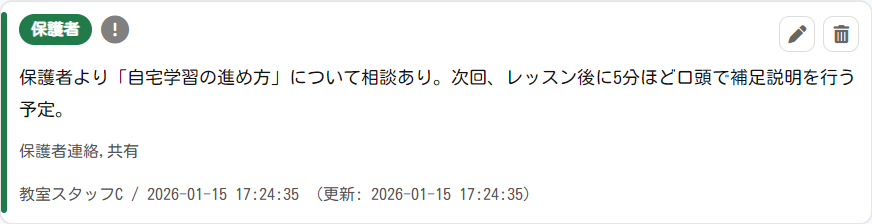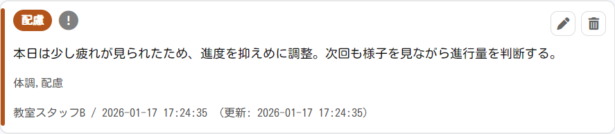 講師間・運営間での情報共有や、継続的な対応判断にも役立ちます。