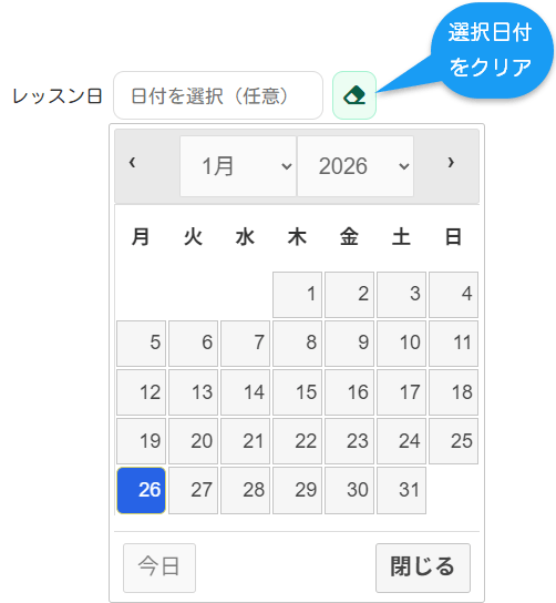 ※日付はカレンダーから選択し、不要なら「クリア」で外せます。